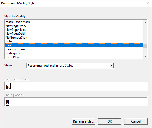 Below these two controls are two read-only text boxes that show you the codes contained in your selected style. The first displays the Beginning Codes for the style, and the second, its Ending Codes.
